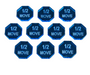 - (10) 19mm Fluorescent Blue One Half Move tokens